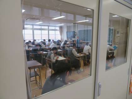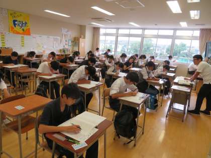 3年生の区学力調査の様子です。今日は1日かけて5教科のテストを行います。生徒たちも真剣に取り組んでいます。(田村)