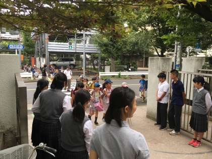 ふなきぼ生のあいさつに小学生も元気に返してくれています。