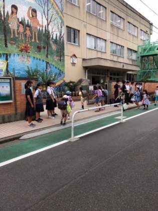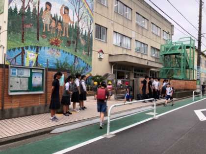 本日もフナキボ生が、小学校正門であいさつ運動を行いました。(副校長)