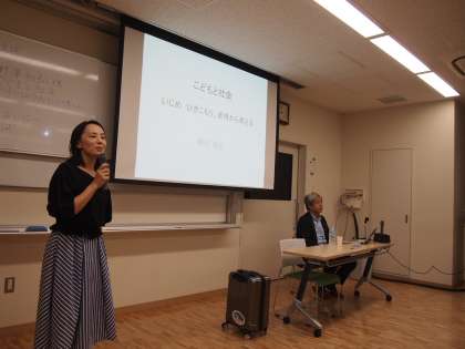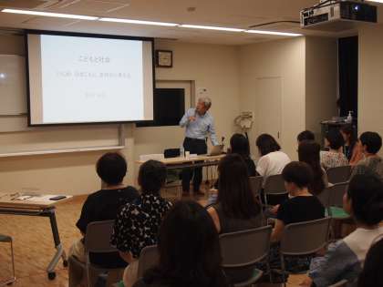 今日の単P研修会の講師は、毎日新聞社の論説委員である野澤和弘さんにおいでいただき「こどもと社会」をテーマに虐待やいじめ、ひきこもりの背景にある現代社会の課題を自らの取材での体験談などを交えながらお話していただきました。豊富な経験をお持ちの野澤さんならではの講演で、聞き終えたあとは「何か私にもできることをしようと」という気持ちになる素晴らしい講演でした。