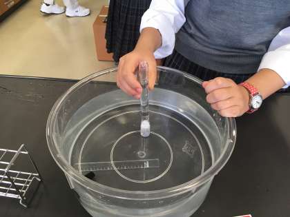 水素の反応に驚きながらも、集中して楽しく授業を受けていました。