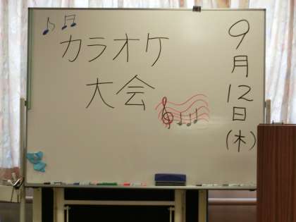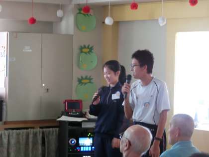 ちょうどカラオケ大会の最中で、体験中の生徒たちも恥ずかしながらも歌っていました。