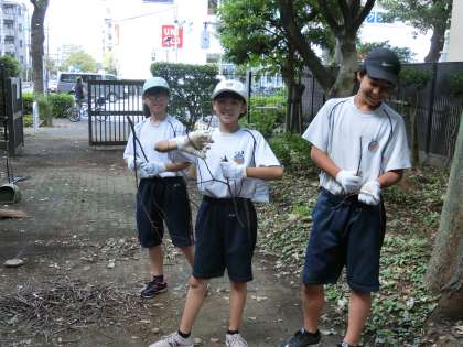こちらでは、屋外での作業の体験を行っています。枝を折る作業は手をケガしないように気を付けましょう。
