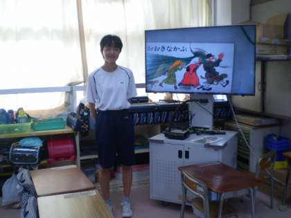 こちらでは、授業の補助を体験させていただいていました。ICTはフナキボでも授業で良く活用するので、実物投影機の操作など力を発揮してくれました。