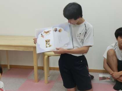 今日は、事前に選んだ本の読み聞かせを実践していました。緊張も感じられましたが、よく頑張っています。