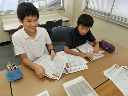 事務作業の体験をさせていただいています。体験する時間も残りわずかなので、最後まで頑張ってください。