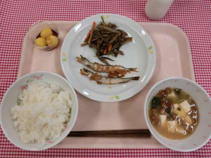 給食では、かぼちゃと練りこみお月さまを模したお団子を出しました。