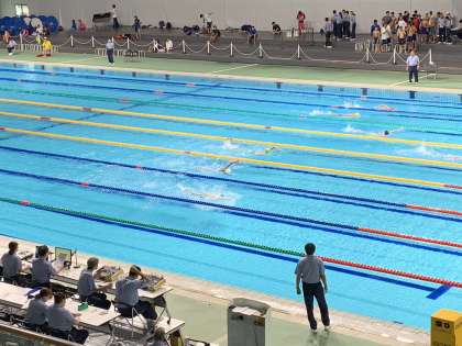 独特の雰囲気にのまれず、堂々と自分の泳ぎをすることが目標です。(丸本)