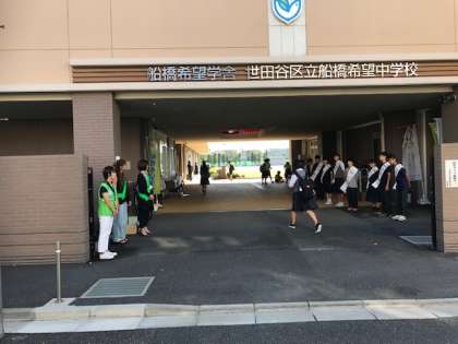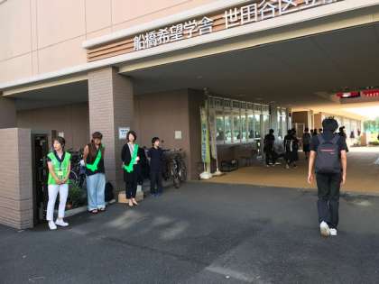 本日17日から3日間、1年2組保護者様によるあいさつ運動が行われています。朝早くからご協力ありがとうございます。今朝は、選挙が迫っている生徒会役員立候補者の生徒たちも参加しています。(副校長)