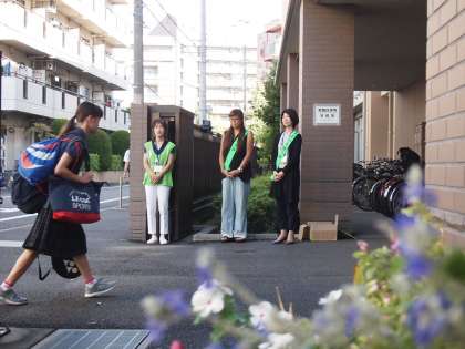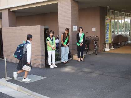 新緑の5月連休明けから始まったあいさつ運動も今週で8回目。まだまだ日中は夏日となる予報が出ていますが、登校時、そして部活が終わって下校する時に外に出ると、確実に秋を感じますね。
