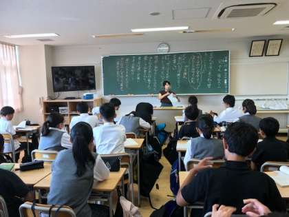 1年生の国語の授業です。小説最後の部分を教材に、物語の登場人物の気持ちを考えながら、読みこんでいます。漢字については、繰り返し書いて練習することが大切ですが、面倒がらずに取り組んでほしいと思います。(副校長)