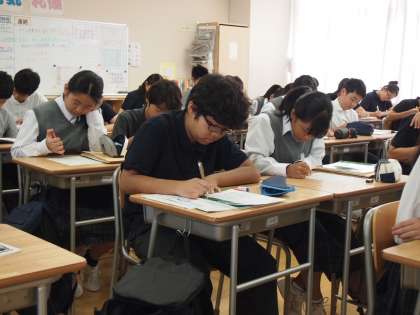 いつもながらテンポのよい授業展開で進んでいきます。3人称という1年生英語の最大のキモの部分を丁寧に分かりやすく説明していきます。