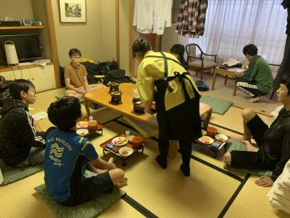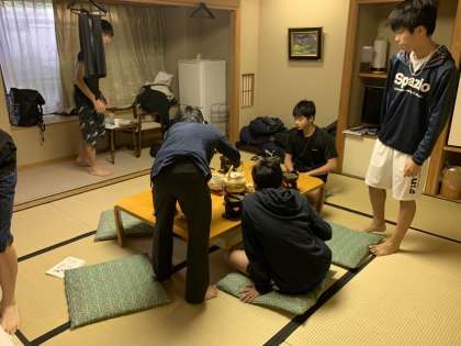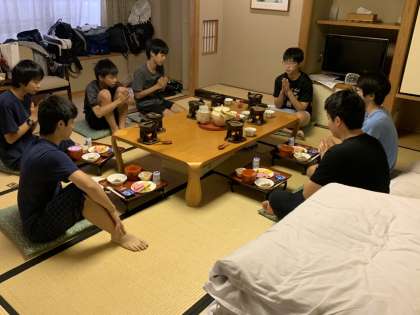 瞳を開けた8期生たちは布団をたたみ、すぐに朝食を食べています。