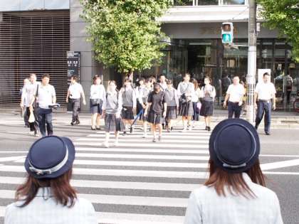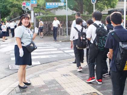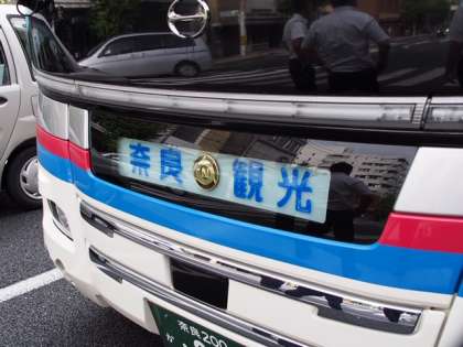 バスは奈良観光。奈良と大阪からフナキボ生のためにやってきました。ガイドさんに迎えていただきました。