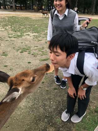 奈良公園の鹿については観光客の手荷物を奪った、などとというニュースがたまに報道されますが、相手も動物。こちらから心を開いて歩み寄れば、必ず心を開いてくれる!という証拠画像がこちらです。