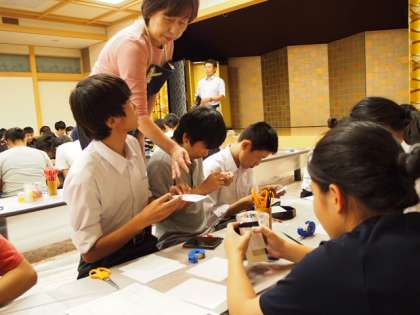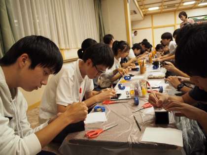 漆器の加飾が今夜の体験学習です。好きな柄を元に絵付けと色付けを行っていきます。
