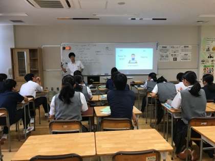 2年生の英語の授業です。willを使った文章を学びます。助動詞の後の動詞は原形など、英語のルールを確認しながら学習を進めています。(副校長)