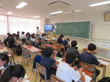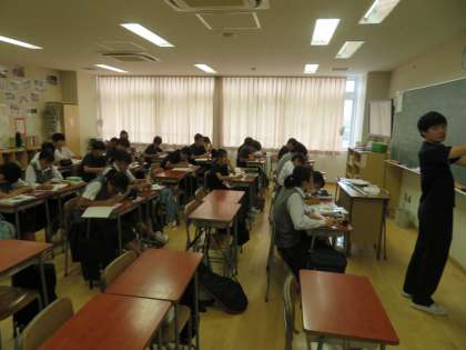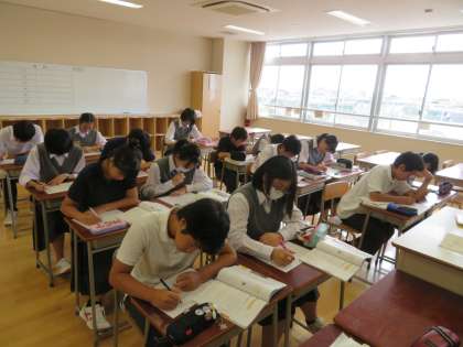 2年生数学の授業の様子です。1次関数の式を求めることをそれぞれの習熟度に応じて学習しています。週の始めですが、どのクラスも集中して取り組んでいます。(田村)