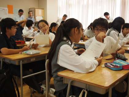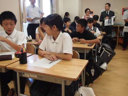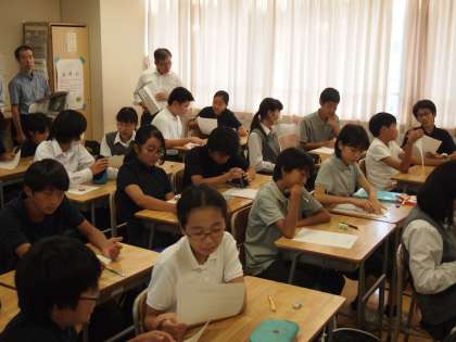 最初にどちらが使いやすいか予想して、意見交換することから始めましたが、いつものように隣同士本当に楽しそうに活発に話し合っています。これには、来校した新聞社の方もびっくり。「いつもこうなんですが?!」「はい。普段どおりです」
