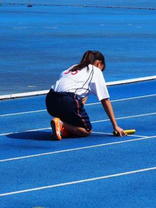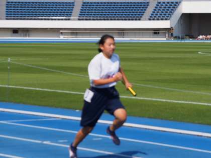 午後はリレー競技です。チームワークをいかしてバトンをつないでいきます。