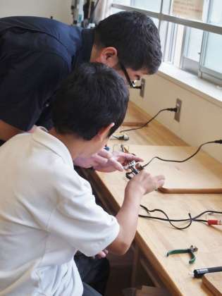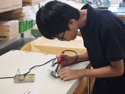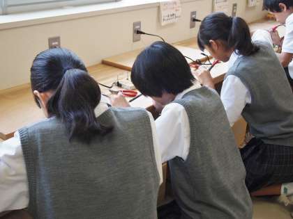 2年生技術はLED行灯を製作中です。ハンダ付けに取り組む9期生の真剣な後ろ姿は、8期生にも負けていません。
