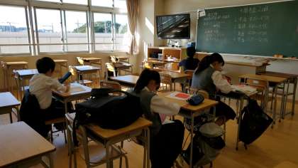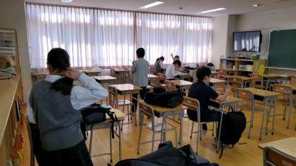 本日は中間試験の2日目、国語と英語の試験が実施されます。1年生の教室では、7時台に登校して黙々と勉強している生徒や友達同士で問題を出しあって試験に備えている生徒が見られます。