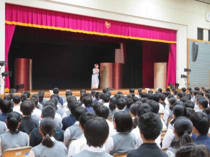 本日5、6校時体育館で芸術鑑賞教室が行われました。昨年度より、年度ごとに様々な芸術を鑑賞する取組を行っており、29年度は落語、30年度は合唱を過去に行いました。