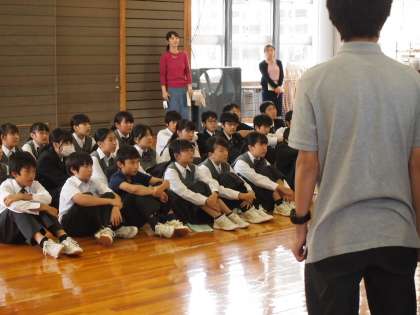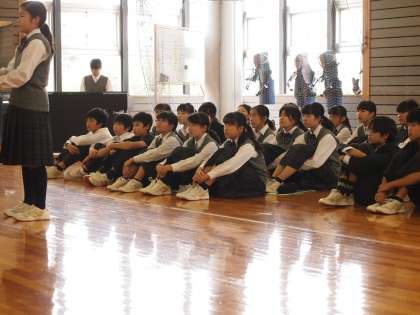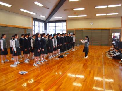 8年生の気合の入った、本格的な合唱が目の前で展開されているのを目の当たりにした10期生の表情です。