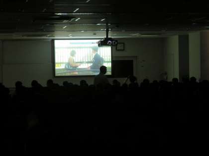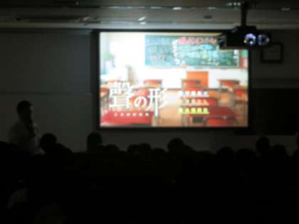 今日は、学年合同で、「聲の形」という映像教材をもとに、あってはならない「いじめ」について考える授業を行いました。
