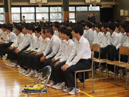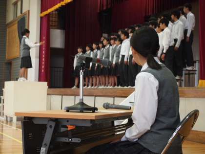 今日、このリハーサルをしている間に体育館の雨漏りを修理するための業者の方が屋根を歩き回っていました。「ボコッ、ボコッ」と相当な音が響いていました。が、他のクラスの合唱に集中しているこの微動だにしない姿勢か今のフナキボを象徴しています。