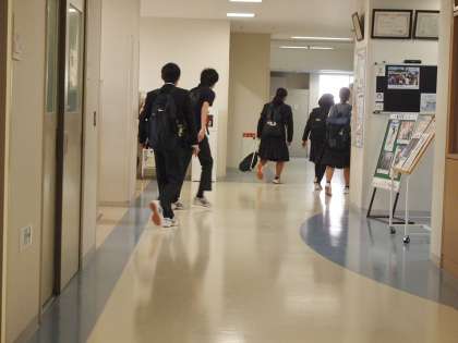 7時40分頃から続々と登校する生徒たち。昇降口から小走りに教室へ向かっていました。