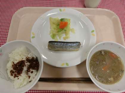 主菜は、旬のさんまをシンプルに塩焼きしました。腹ワタは取ってありますが、骨があるので上手にお箸でほぐして食べましょう。