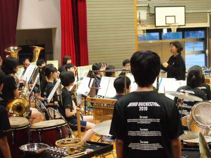 合唱コンクールと平行して吹奏楽部の生徒たちは、楽器も懸命に練習を積みかさねてきました。その成果もいよいよ明日です。ソロの部分や出だしなど綿密な打ち合わせをしています。