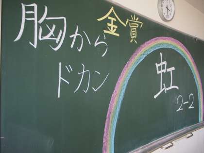 昨日の学芸発表会とはうってかわり、今日の校内はもちろんひっそりとしています。教室を回ってみると、半数ほどの教室には昨日の余韻が残っていました。