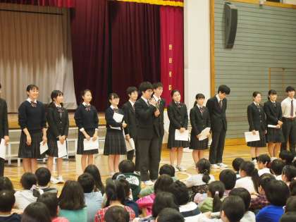 小6見学会では、3年生が校内を案内しました。小学生を前にすると、8期生はより‘おとな’の雰囲気に感じられますね。