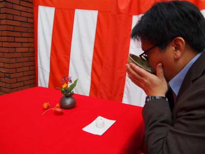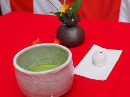 今年で30回目を迎えるふれあい祭り。今年も本校の生徒が子どもぶんか村ボランティアとして参加している姿を見に行ってきました。その前に、まず民生児童委員協議会が提供していただいている、抹茶とおかしを頂きました。