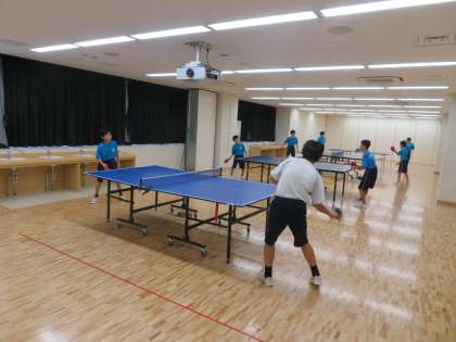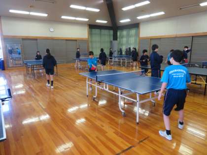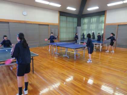 卓球部の練習の様子です。学芸発表会も終わり、冬の区大会に向け練習に取り組んでいます。まずは、期末前までの期間、1回1回の練習を大切にしましょう。(田村)