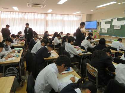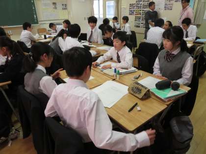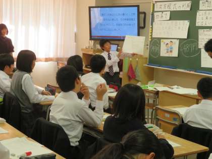 2ブロックの数学では本校で伊井先生の研究授業の実践を行いました。先生、生徒たちが良い授業を作ろうという意識で、自力解決、グループ活動、全体での考え方の共有など大いに頑張っていました。(田村)