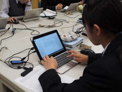 船橋希望中学校にはICT支援員がいて、パソコンの扱い方から図の挿入方法など生徒からの様々な質問に答えていただいています。プロの方のサポートを受けつつ、英文レポートは完成へと近づいています。