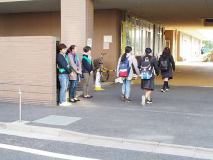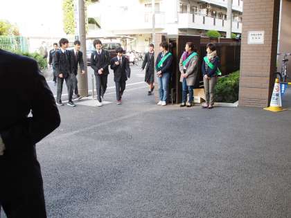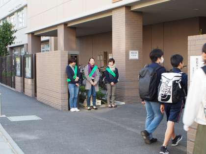 1年4組の保護者の方によるあいさつ運動最終日です。土曜授業の今朝も、笑顔で出迎えていただきました。