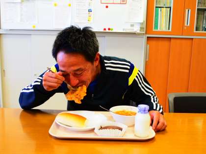 今日の給食、ウィンナーシュニッツェルは、子牛の代わりに鶏肉で作りました。なかなか、どうして。柔らかい子牛にそっくりです。あんずジャム入りチョコケーキ「ザッハ・トルテ」も本格的です。ごちそうさま!