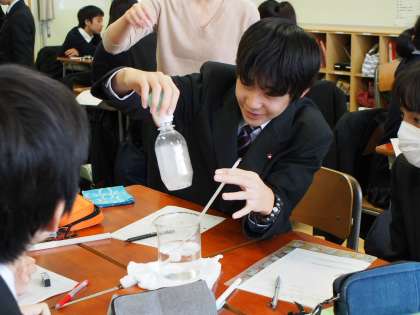 途中でエタノールを配って再度挑戦すると、あちこちから「できた」と歓声があがりますす。うまくいかないのも、実験の過程では大切なことだと改めて思いました。