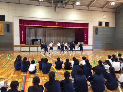 グループごとにフォーメーションを決め、楽しく踊っています。(大居)