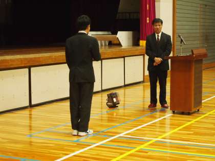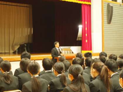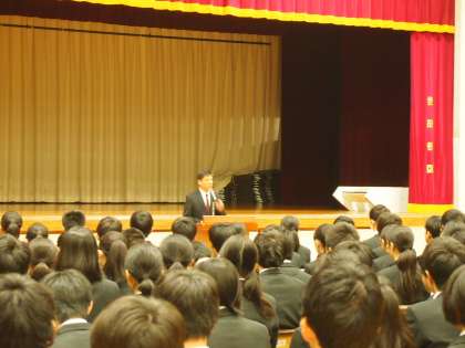期末考査が終わってすぐに体育館に集まった8期生。例年この時期に都立高校の先生をお招きして受験に臨む姿勢についてのお話を伺っています。今回のタイトルは「高校が望む生徒像」です。千歳丘高校の小野村校長先生からのお話は期末考査を終えたばかりの8期生にとって、今後の生活の指針となる内容でした。