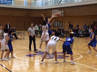 寒い雨の中暑い応援を頂き、勝つことができました。前半、接戦でしたが、自分たちのバスケットボールを信じて試合展開をすることができました。明日は、順々決勝です。頑張ります。