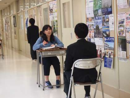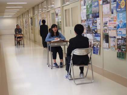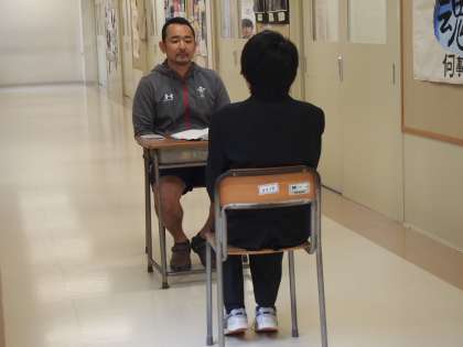 そして8期生の廊下では、担任の先生が今日から始まる校長面接の練習をしています。ノックのやり方を何度も練習したり、挨拶の声が小さいことを指摘したり、もしかすると私(校長)より厳しい(?)かもしれません。でも本番できちんとできるためには、練習の段階で完全でないとならいなことは明白です。担任の先生、ありがとうございます。