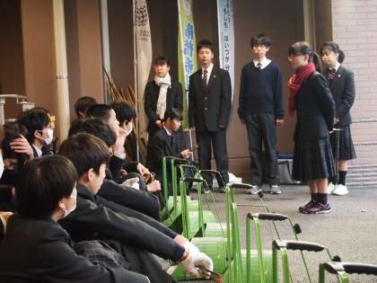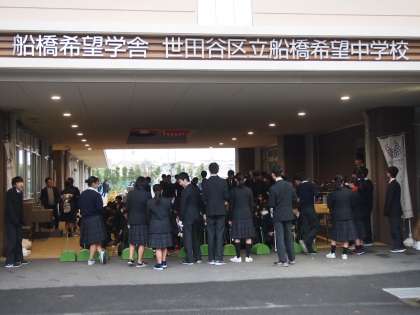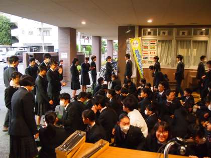 今日は落ち葉掃きポランティア1日目。8期生が8時前に大挙してピロティーに集まっています。生徒会役員から説明を受けたあと、‘落ち葉スポット’に移動していきます。生徒会役員の説明に拍手が起きたのは、「後輩頑張っているね」というねぎらいの気持ちがあったのですね。