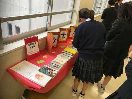 本日から12月14日まで、各学年の廊下に図書室の人気本がやってきました。図書室に行かなくても、目の前に並んだ本の数々。どんどんと手に取って読んでみてほしいですね。(副校長)
