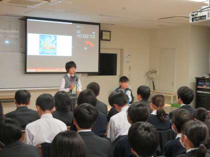 レベルの高い発表が続いています。また、図書委員の皆さんも中身を盛り上げようと頑張っています。(田村)