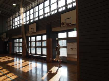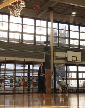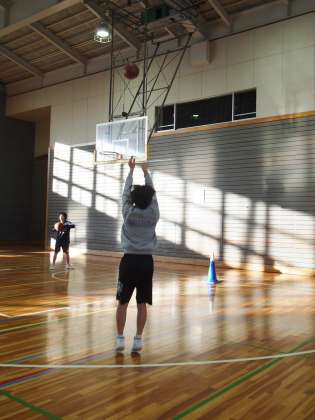 冬の陽ざしが降りそそぐ中で、元気に黙々とシュート練習をするフナキボバスケッートボール部員です。